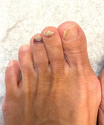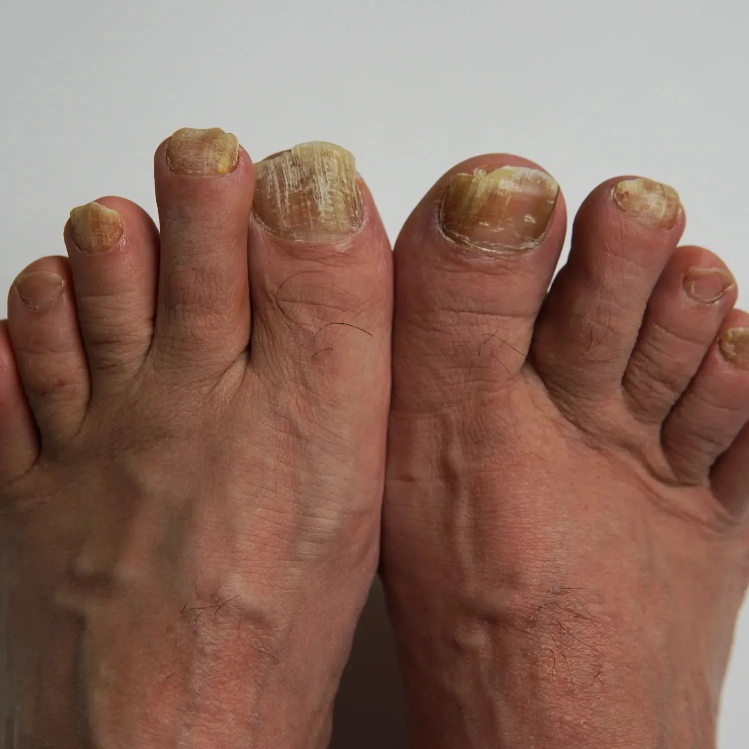 Fungal infections, trauma, and conditions such as psoriasis can cause thick, discoloured, brittle, and painful nails. Cases such as ingrown toenails and paronychia can even affect mobility.